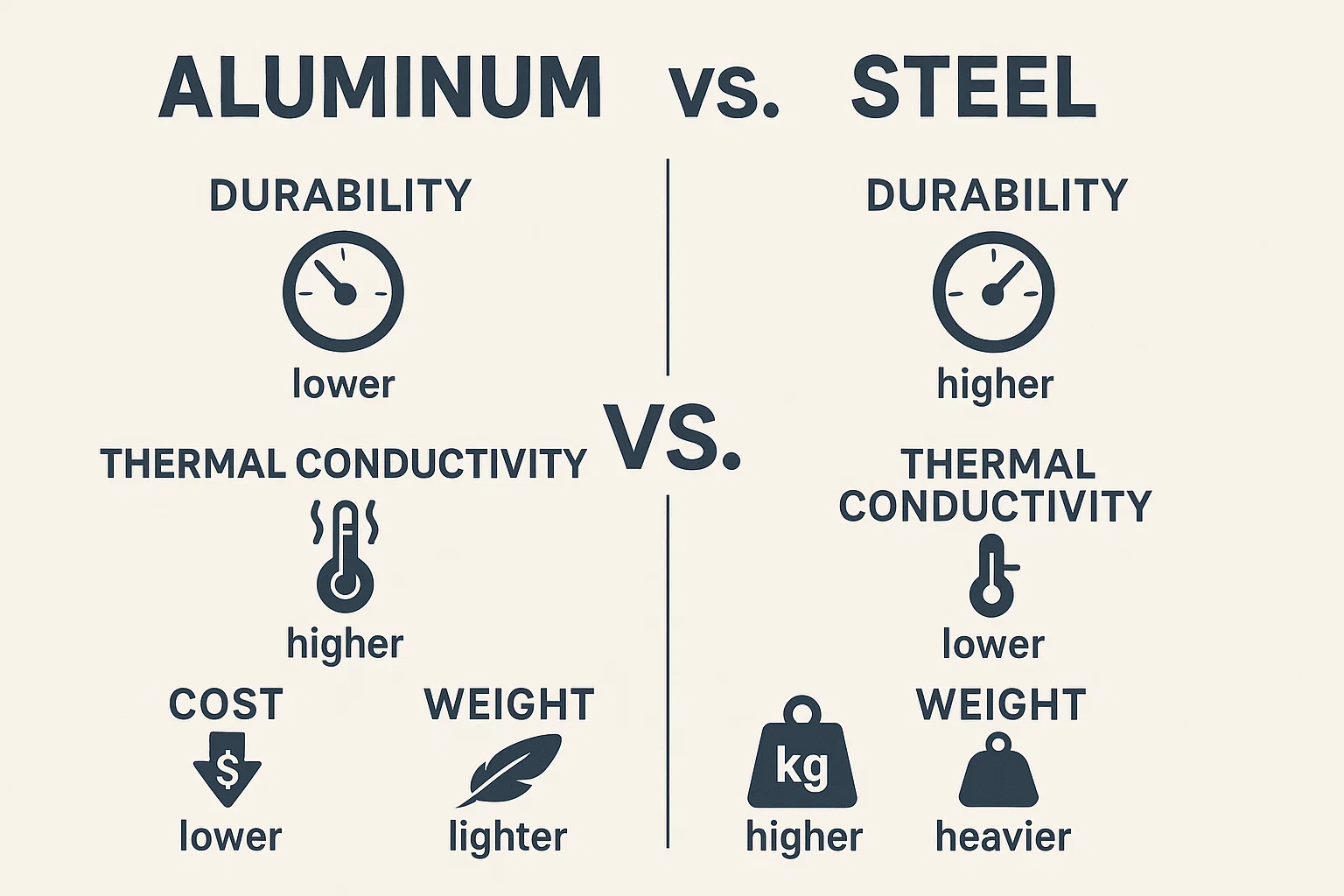 Kad odabere između aluminija i čelika, odluka se svodi na nekoliko kritičnih razlika koje utječu na proizvodnju.