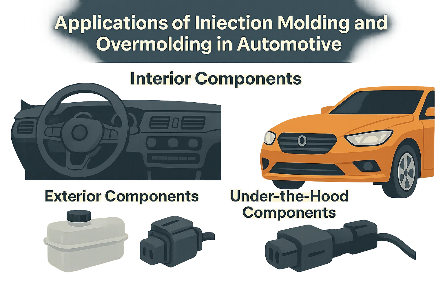 Ubrizgavanje i prevladavanje ključni su dio automobilskih proizvodnih krajolika. Omogućuju stvaranje složenih, laganih i izdržljivih komponenti u unutrašnjosti vozila, vanjskih i sustava ispod kapuljača.