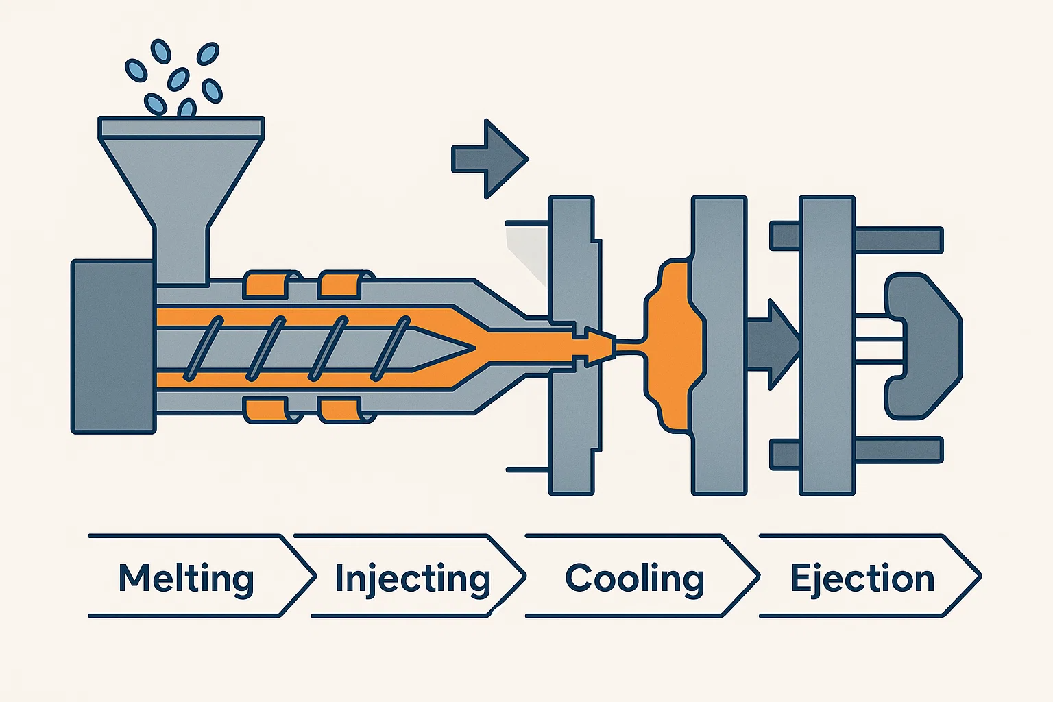 Kako to funkcionira: taljenje, ubrizgavanje, hlađenje i izbacivanje